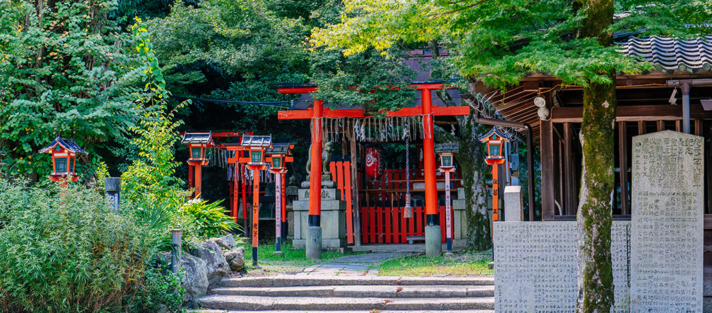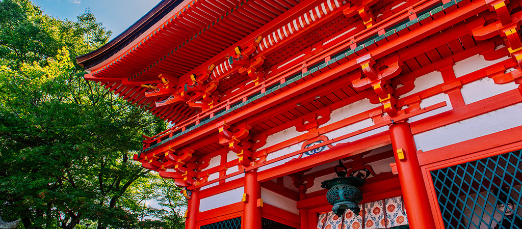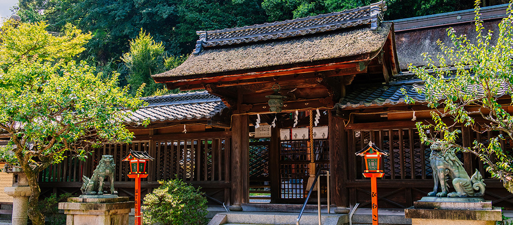 こちらは、長等神社(ながらじんじゃ)です。創建は西暦667年、天智天皇が大津に都を遷都した際、建速須佐之男大神(たけはやすさのおのおおかみ)を長等山岩倉(ながらやまいわくら)に勧請したのが始まりと伝えられています。