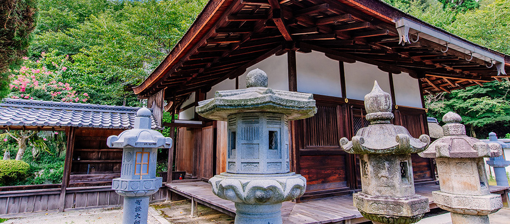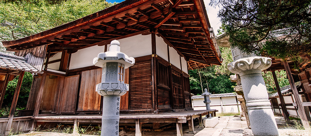 It is the main building of Tōin, Chishō Daishi’s mausoleum. It has a simple appearance with its hiwadabuki style roof, but inside it enshrines some national treasure like sitting Chishō Daishi statue and a golden Fudōmyōō painting.