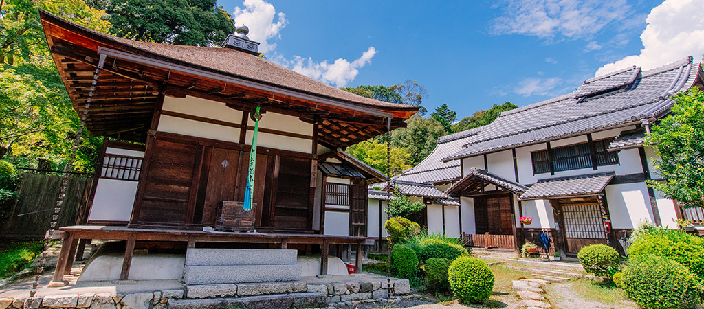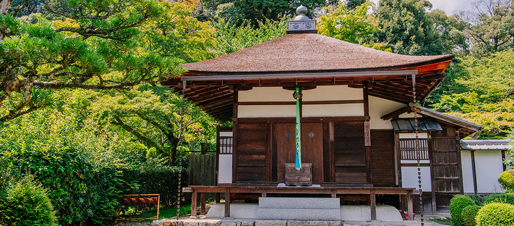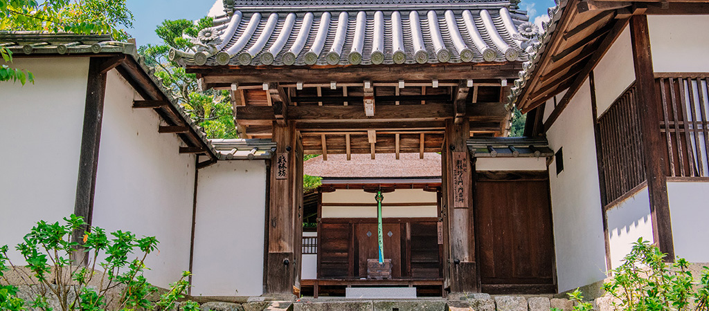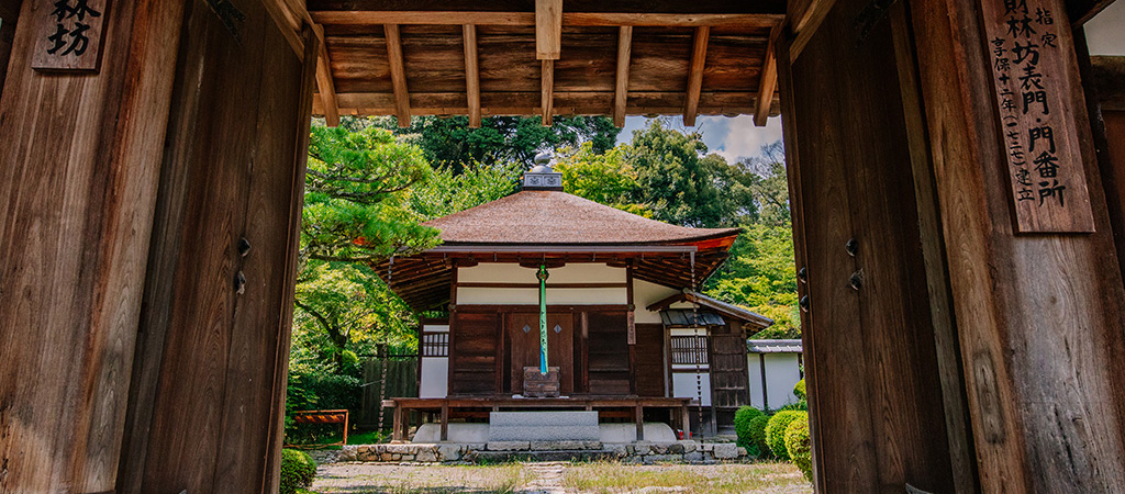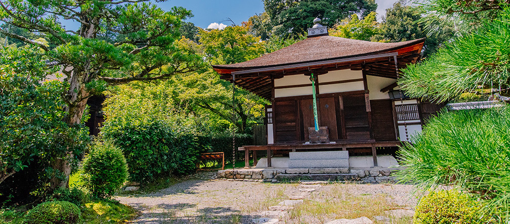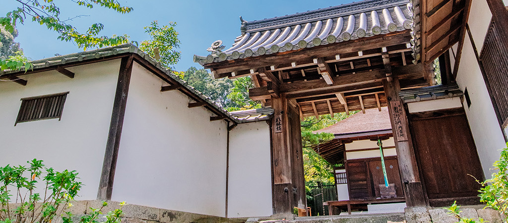 At Gohōsha Honchi-dō the centre of worship is the Goddess Hariti / Kariteimo, famous for her connection to the Sendango Festival, Festival of one thousand dumplings, held every year in May for the past six hundred years at Miidera.Built in 1651, the hall was relocated to its present site during extensive renovation carried out in 1727 and during renovation work in 2004 the cypress bark thatching was restored to its original condition bringing back to life the ambience from centuries past.
