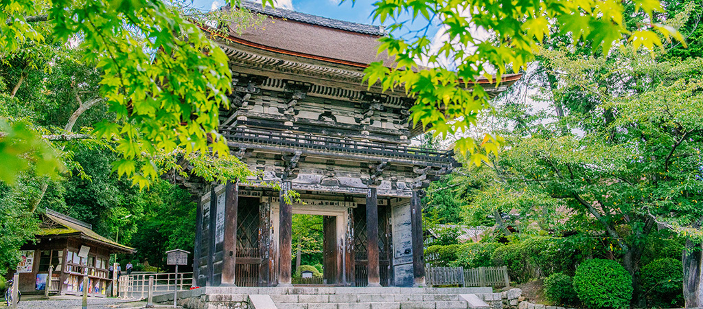 Cette grande porte a été construite dans le fameux temple Joraku-ji de la ville de Konan dans la préfecture de Shiga en l’an 4 de l’ère Hôtoku (en 1452) puis fût déplacé au château de Fushimi par Toyotomi Hideyoshi. Ensuite, elle fût offerte au Temple Mii-dera par Tokugawa Ieyasu en l’an 6 de l’ère Keichô (en 1601).