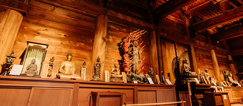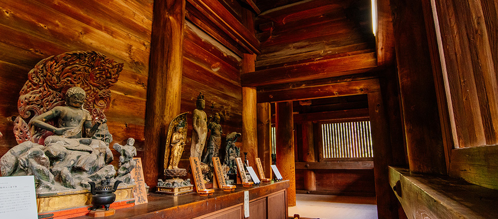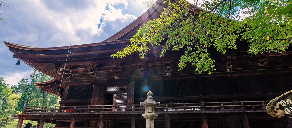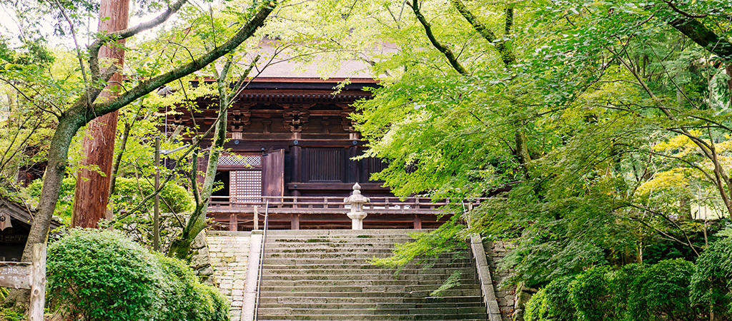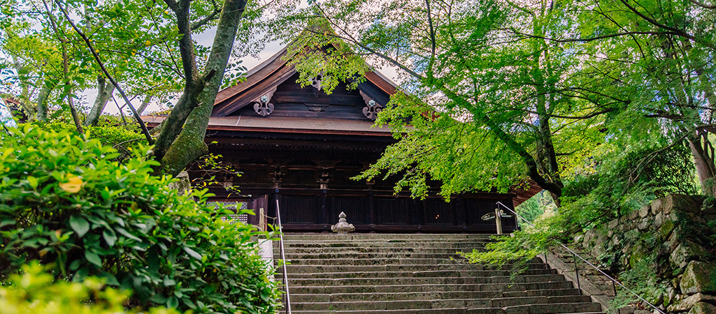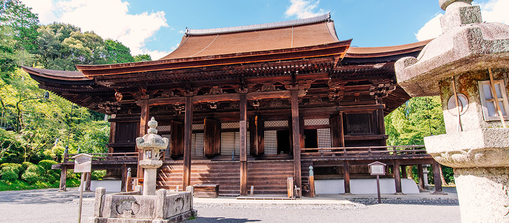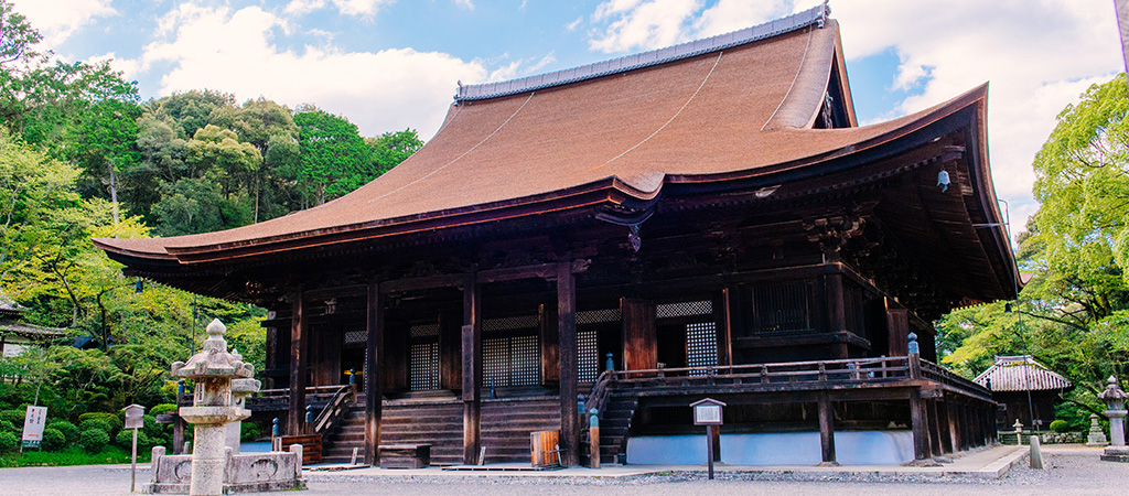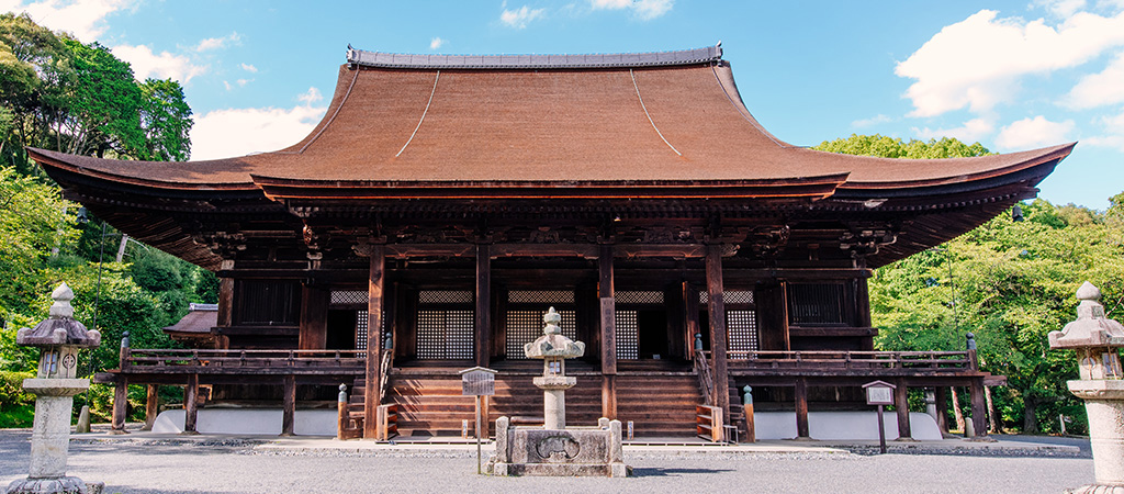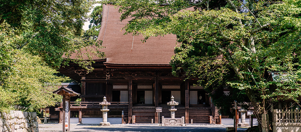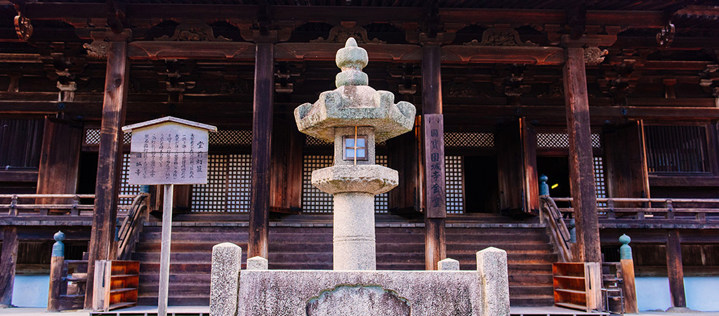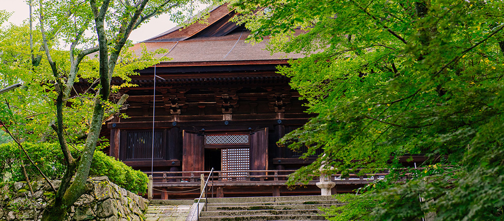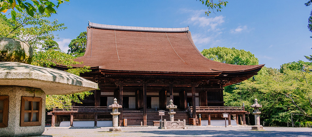 삼정사(미이데라) 총본당. 정면, 안길이 모두 23미터가 넘는 위엄있는 불당으로, 중후함 속에 히와다부키(노송나무껍질로 지붕을 잇는 일본 전통 건축방식)지붕이 경쾌하고 아름다운 명건축으로 알려져있다. 내부는, 외진・내진(본존을 안치한 곳)・후진으로 나뉘어져, 본존・미륵불을 안치한 내진 중앙은 마루를 깔지않고 한 단을 내려 토방으로 하는 등 전통적인 천태종계 밀교불당의 형식을 전하고 있다. 현재의 금당은, 토요토미히데요시의 정실 키타노만도코로에 의해 재건된 것으로, 게이죠4년(1599) 2월에 착공하고, 이듬해 3월에 완성하여 이 대건축을 일년 남짓의 기간에 건설했다는 것은 당시의 뛰어난 건축기술로 매우 놀라운 것이다. 현재, 내부에는 원공불과 존성왕상을 비롯한 많은 불상이 안치되어 있다.돌아온다 지도