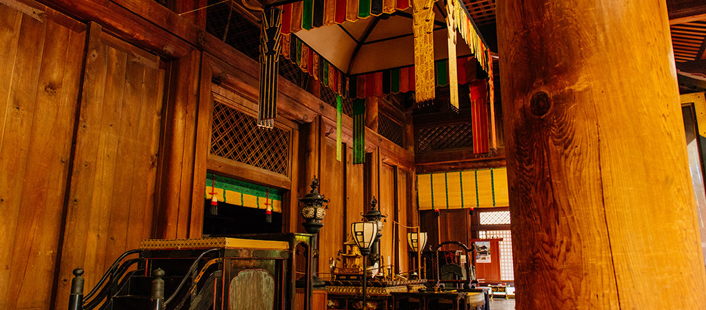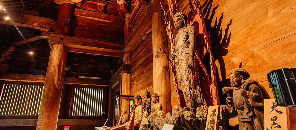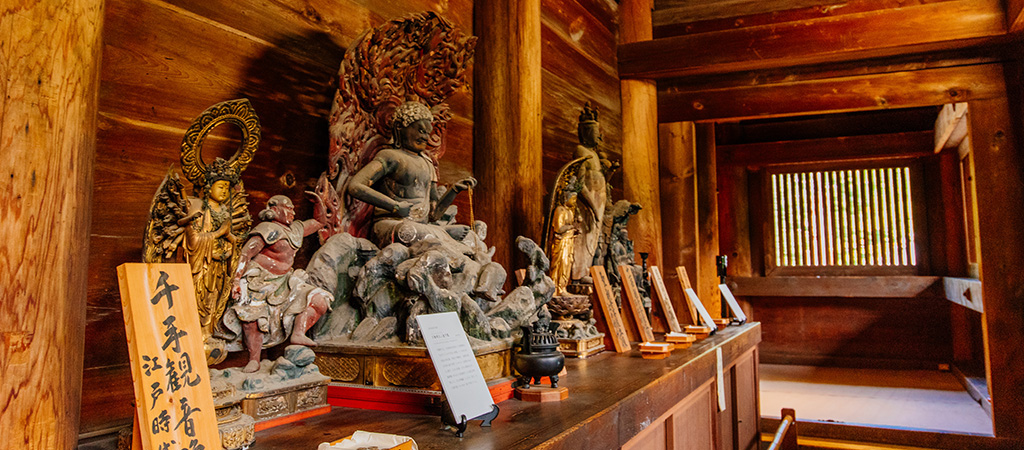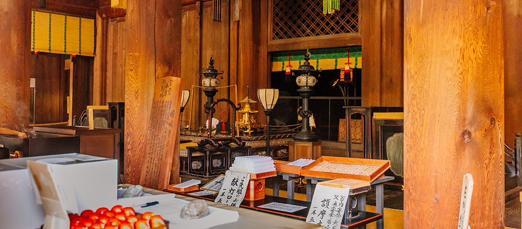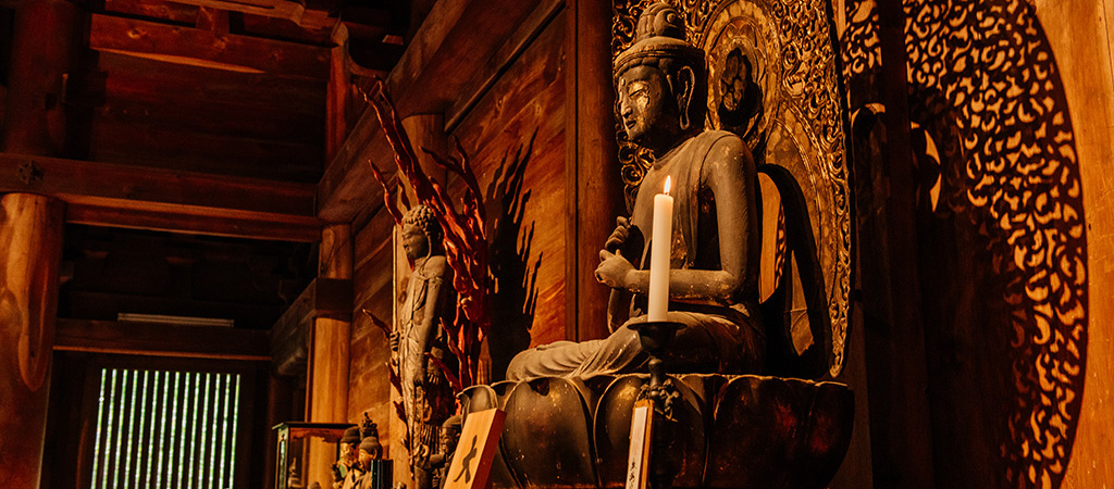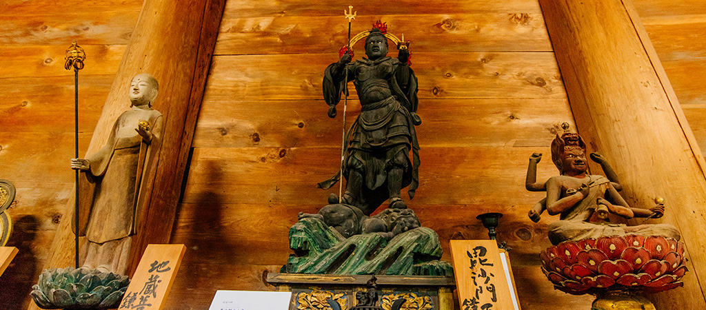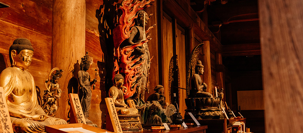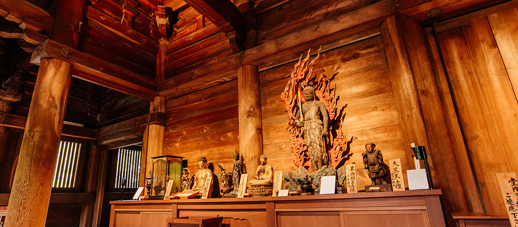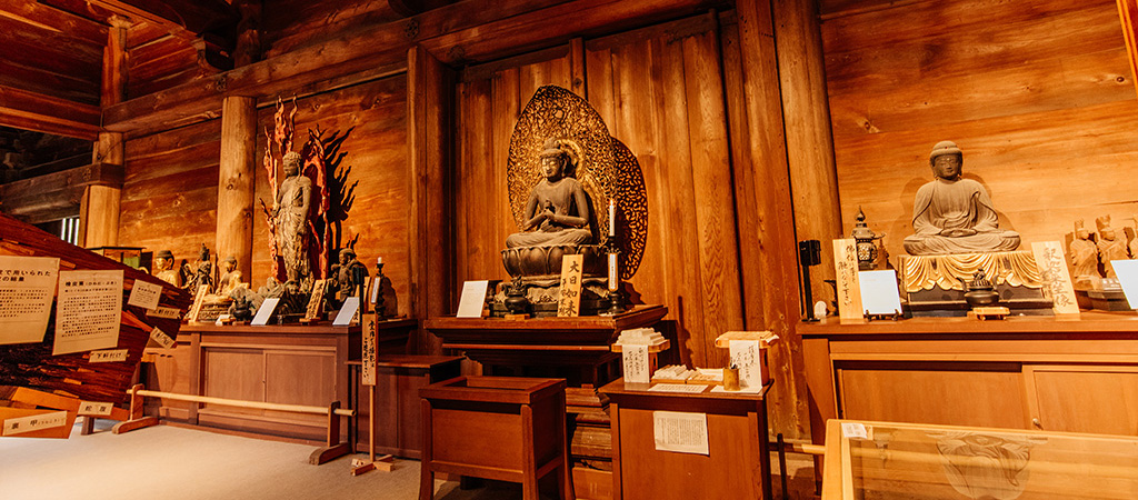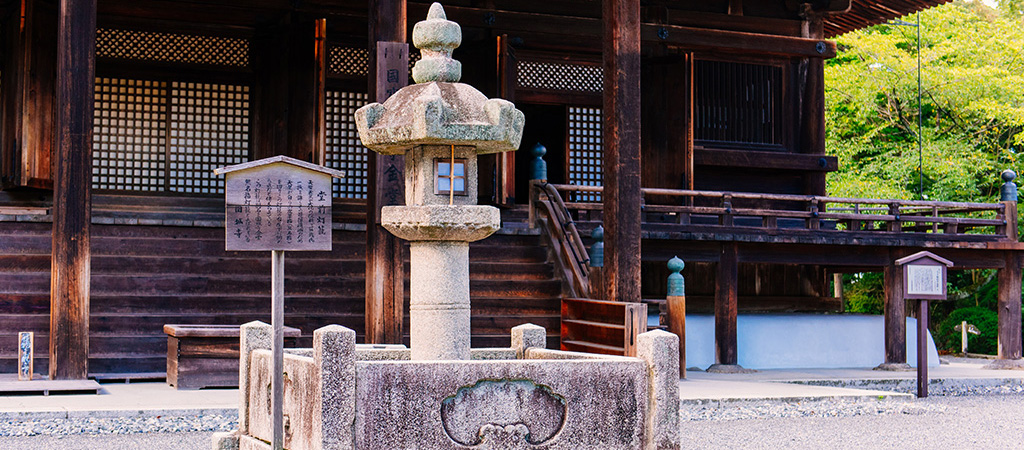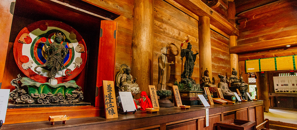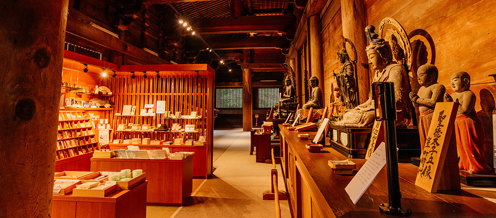 삼정사(미이데라) 총본당. 정면, 안길이 모두 23미터가 넘는 위엄있는 불당으로, 중후함 속에 히와다부키(노송나무껍질로 지붕을 잇는 일본 전통 건축방식)지붕이 경쾌하고 아름다운 명건축으로 알려져있다. 내부는, 외진・내진(본존을 안치한 곳)・후진으로 나뉘어져, 본존・미륵불을 안치한 내진 중앙은 마루를 깔지않고 한 단을 내려 토방으로 하는 등 전통적인 천태종계 밀교불당의 형식을 전하고 있다. 현재의 금당은, 토요토미히데요시의 정실 키타노만도코로에 의해 재건된 것으로, 게이죠4년(1599) 2월에 착공하고, 이듬해 3월에 완성하여 이 대건축을 일년 남짓의 기간에 건설했다는 것은 당시의 뛰어난 건축기술로 매우 놀라운 것이다. 현재, 내부에는 원공불과 존성왕상을 비롯한 많은 불상이 안치되어 있다.돌아온다 지도