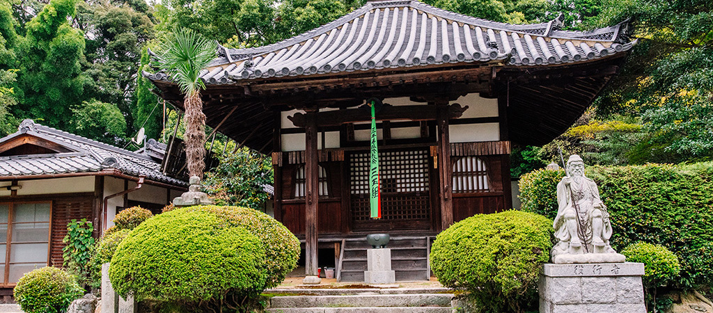 原本是属于西国14号礼所伽蓝的不动堂,明治11年(1878年)时,在建造西南战争出征纪念碑的同时,被移筑到天神山。明治33年(1900年)时,再移筑至现在的地方。宝形造、本瓦葺的建物里,祭祀了修验道的开祖.役行者像为中心的不动明王、智证大